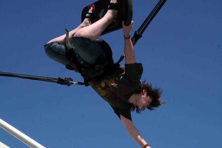 - Der Boarderjump (Fläche 12x12m Höhe 10m) ermöglicht den Teilnehmern, artistische, bis zu 10m hohe Sprünge mit Kiteboards an den Füßen.