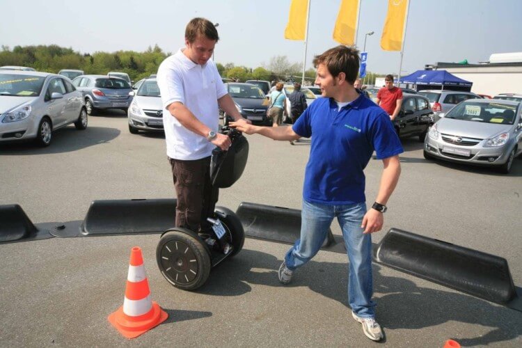 - Der trendige Segway-Parcours (Fläche: variabel) bietet zweien Ihrer Kolleginnen und Kollegen gleichzeitig die Gelegenheit, Ihre Geschicklichkeit beim Fahren zu beweisen. Segwayfahren ist fix gelernt, sodass auch Anfänger problemlos simple Strecken nach kurzer Zeit bewältigen können.