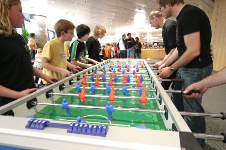 - Der Kicker für 8 Personen (Fläche: 2,7x1,3m) ist keine klassische Standardversion eines Tischkickers. Mieten Sie diesen Tisch für Ihr Sportevent und veranstalten Sie ein Fußballturnier mit mehreren Spielern!