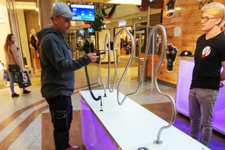 Hast du die Nerven, den heißen Draht zu bezwingen, ohne einen Fehler zu machen? Jede/r Spieler:in startet den Versuch am Heißen Draht XL selbst.