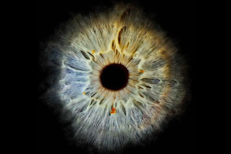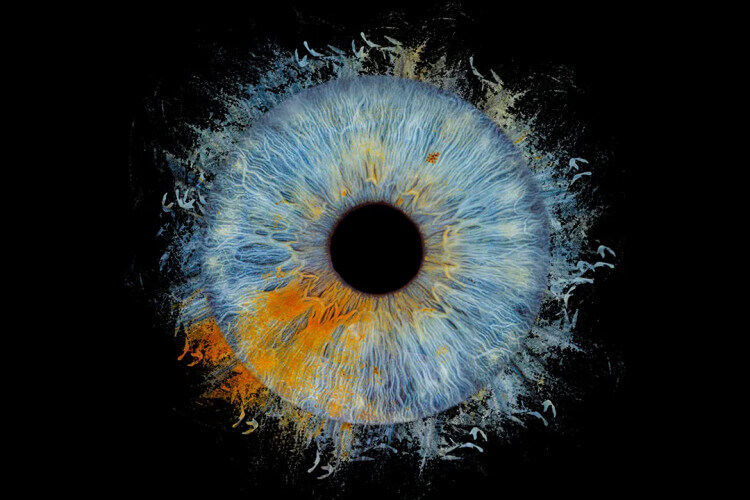Durch eine eigens entwickelte Lichttechnik entsteht eine außergewöhnliche Tiefenwirkung, die die natürliche Struktur und Farbvielfalt der Iris eindrucksvoll hervorhebt.