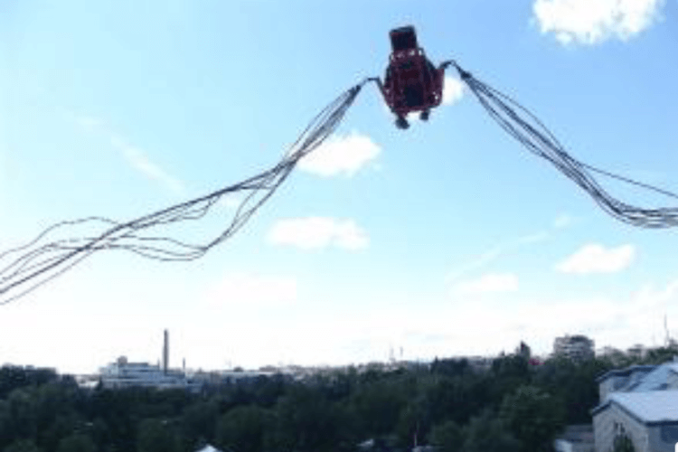 Die 20m hohe teleskopierbare Aluminiumkonstruktion mit integriertem Anhänger ist auf dem neuestem technischen Stand. Sie ermöglicht bis zu vier Teilnehmern unabhängig voneinander mit sanfter Gewalt 25m hoch in den Himmel zu beschleunigen. Der darauffolgende freie Fall garantiert die berühmten Schmetterlinge im Bauch. Die Akteure können dabei nach Belieben Vorwärts- und Rückwärtssalti drehen. Die Teilnehmer sind während der Sprünge sicher in einer stabilen Sitzschale angeschnallt.