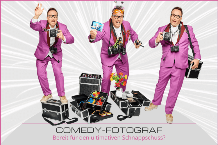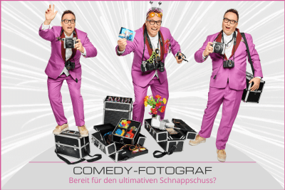 Sie sind bereit für den ultimativen Schnappschuss? Dieser Fotograf holt das Beste aus jedem Motiv heraus. Egal ob mit lustigen Accessoires, skurrilen Kopfbedeckungen oder mit schrägen Brillen. An ihm kommt keiner vorbei. Die dabei entstehenden Fotos haben eine garantierte visuelle Nachhaltigkeit und werden als Belegexemplar für Ihre Gäste über ein mobiles Gerät ausgedruckt. Damit erhält der Gast eine bleibende Erinnerung an die Veranstaltung.