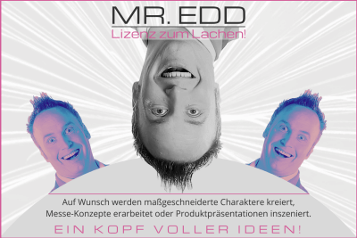 Mit seiner 30-jährigen Erfahrung geht MR. EDD individuell auf seine Gäste ein und ist ein absoluter Garant für Spaß. Erleben sie Mimik und Gestik hautnah. In verschiedenen Comedy-Charakteren wird frech, spontan und schlagfertig pointiert.