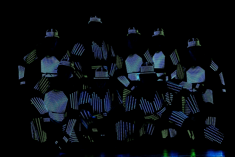 - Innovative LED-Kostüme: Die THE BLACKOUTS nutzen hochentwickelte LED-Anzüge, die es ermöglichen, komplexe visuelle Effekte und Muster in Echtzeit zu erzeugen. Jeder Anzug ist mit 1'800 LEDs ausgestattet, die über spezielle Software programmiert und gesteuert werden. Dadurch entsteht eine aussergewöhnliche visuelle Darstellung.