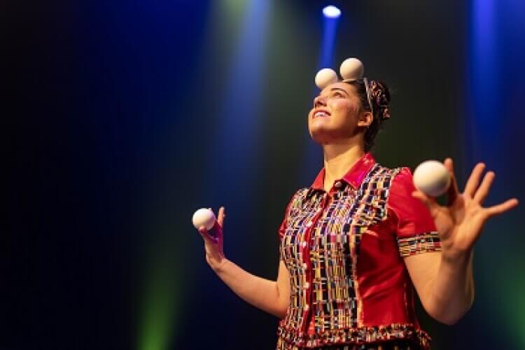 Rhythmische Balljonglage, mitreißenden Diabolo-Tricksund faszinierende Hula-Hoop-Kunst – All das vereint Viola in ihrer interaktiven Jonglageshow. Freuen Sie sich auf beeindruckende Momente voller Schwung, Dynamik und Leichtigkeit!