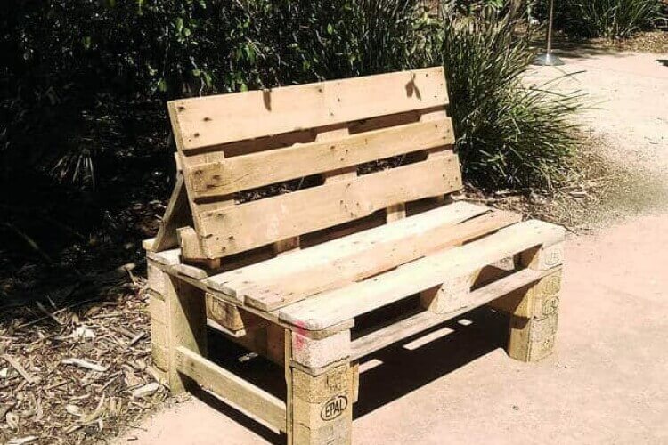 Durch das Hinzufügen von Rückenlehnen und bequemen Polstern wird aus einer einfachen Palette eine komfortable Sitzgelegenheit für den Innen- oder Außenbereich.
